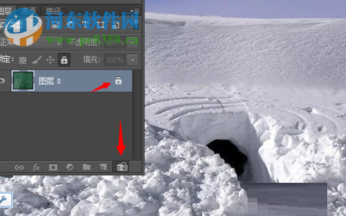 6、另外,用户还可以点击图层右侧的'锁状图标',然后将其拖动到右下角的“垃圾桶”选项中。