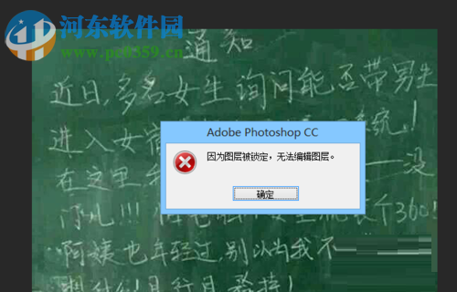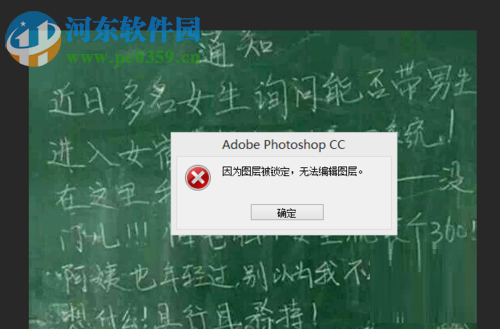 3、但是,部分用户在正常解锁时,弹出了如下的“因为图层被锁定,无法编辑图层”的提示,别急,我们可以按照以下的步骤解决。