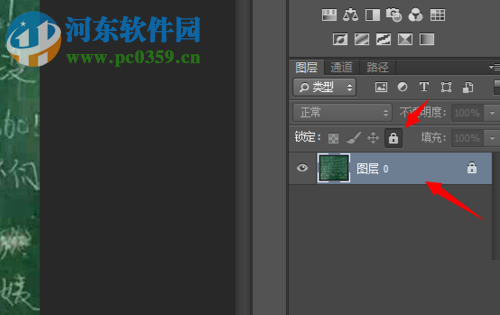 4、我们先选中要解锁的图层,然后点击锁定选项右侧的“锁状图标”。